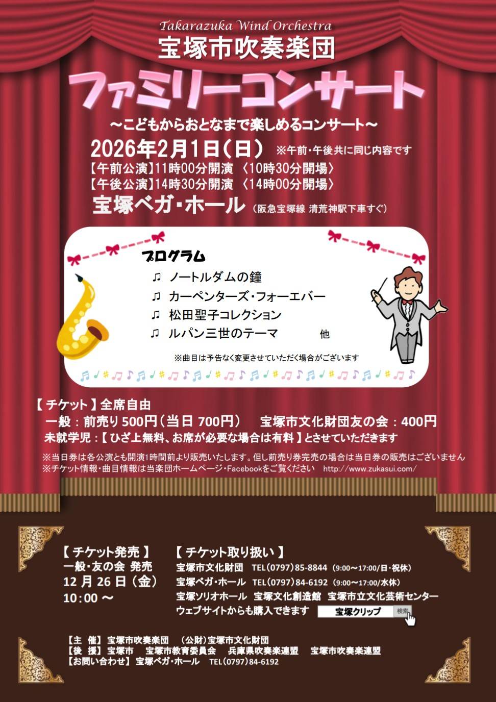 2月1日(日)に宝塚ベガ・ホールにてファミリーコンサートを開催致します。